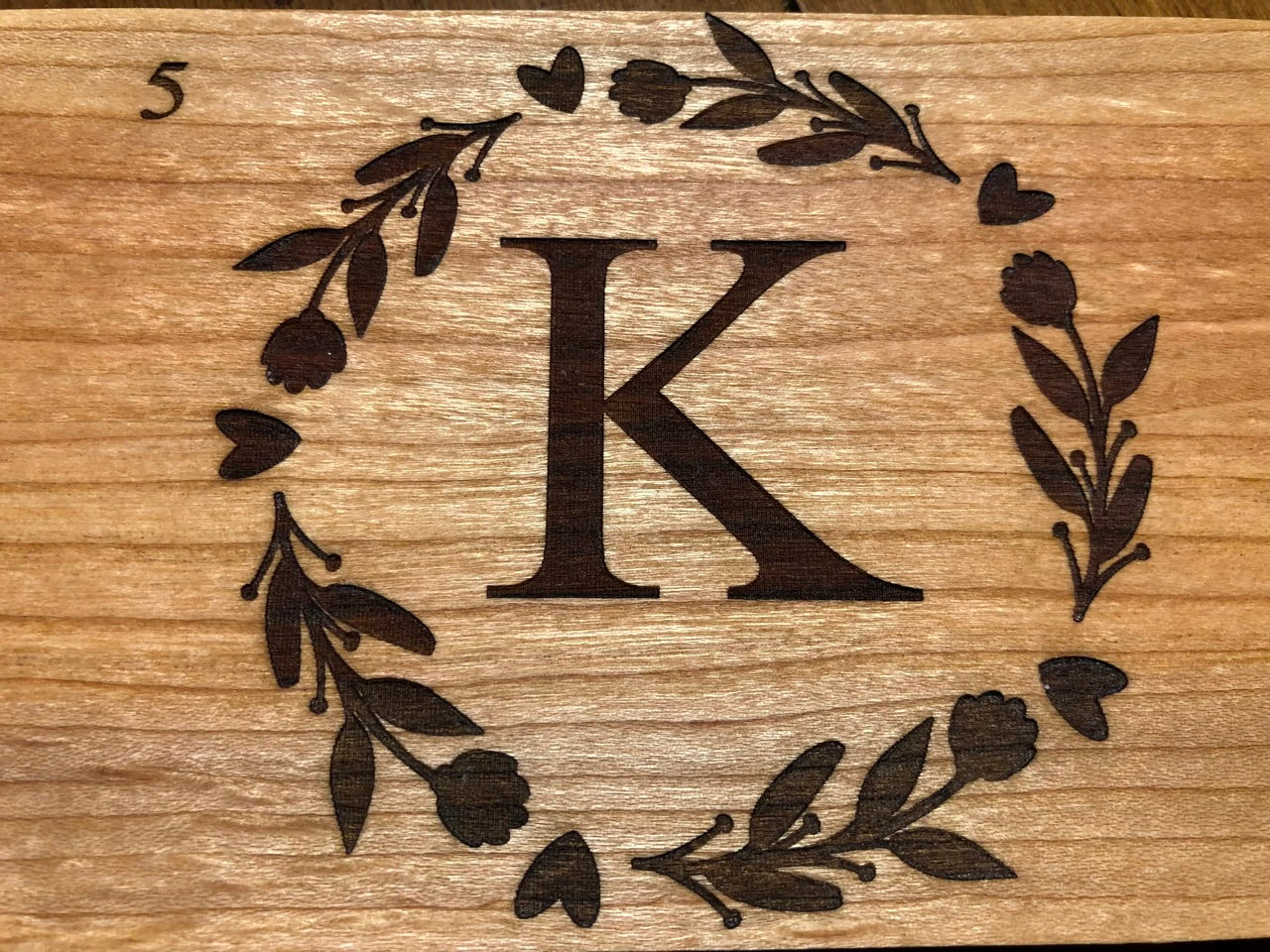 Some types of wood engrave better than others. Lighter the wood the darker the engraving. Maple engraves the best, followed closely by cherry and then walnut.