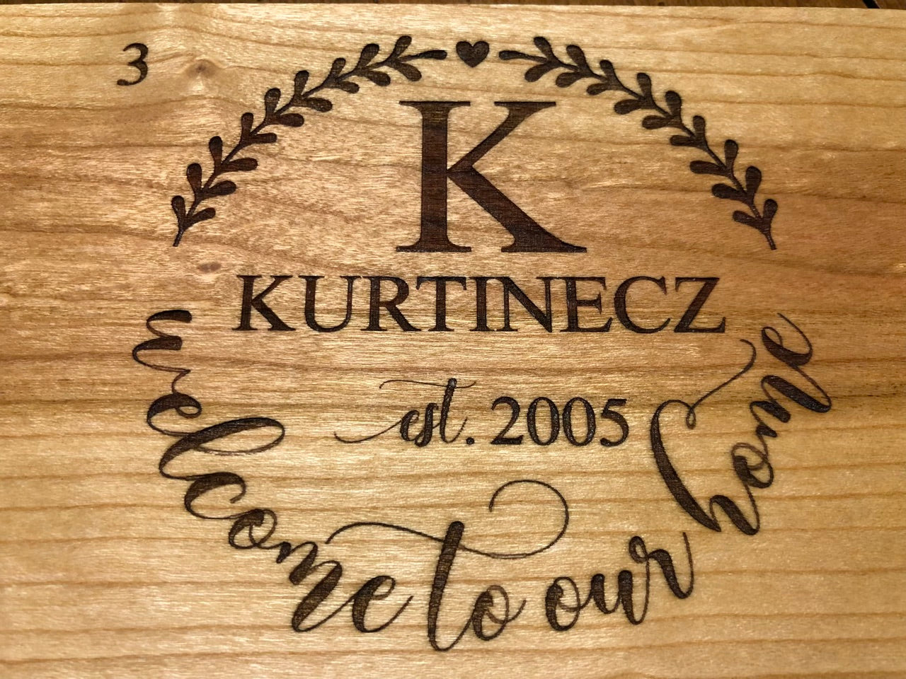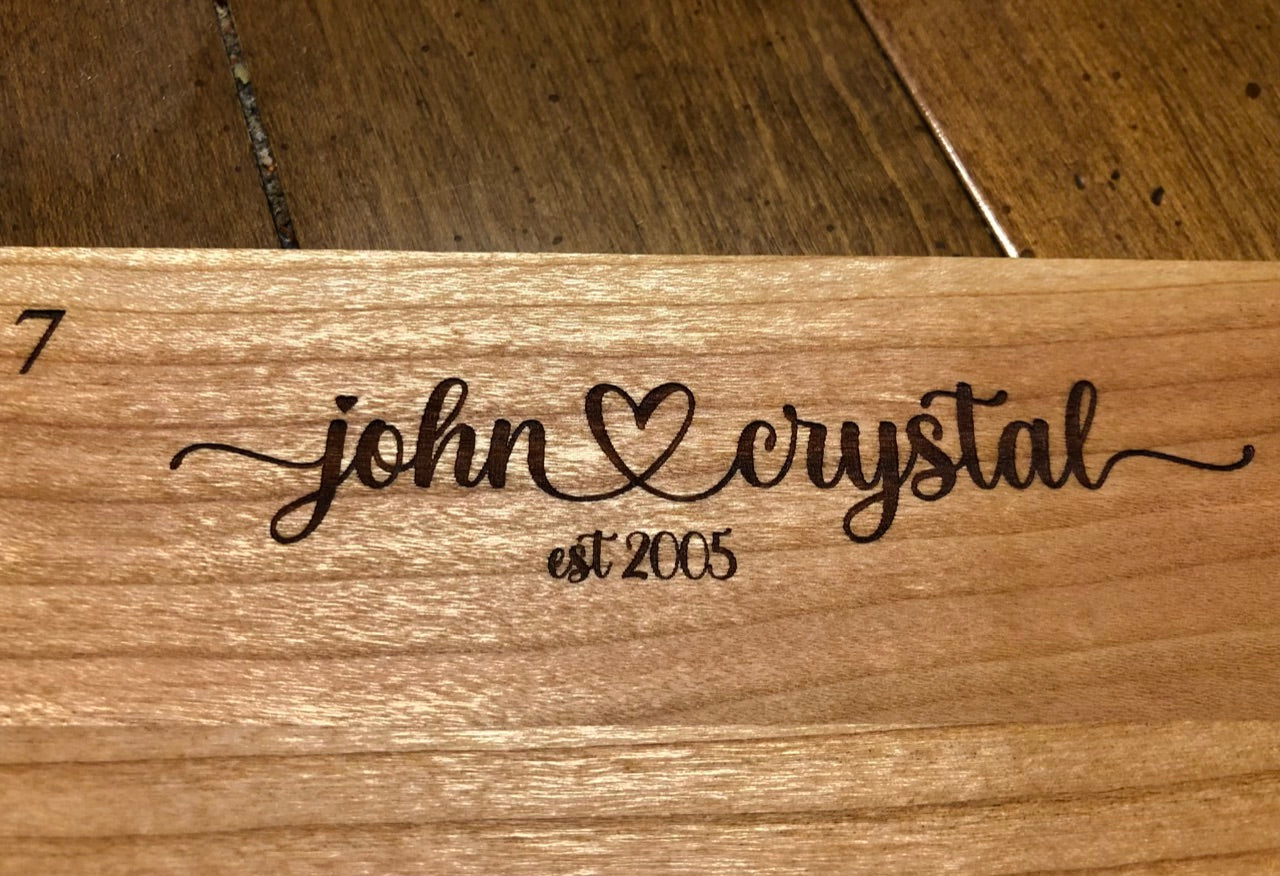 Initials/monogram are popular, especially if you are giving the butcher block as a wedding or birthday gift.