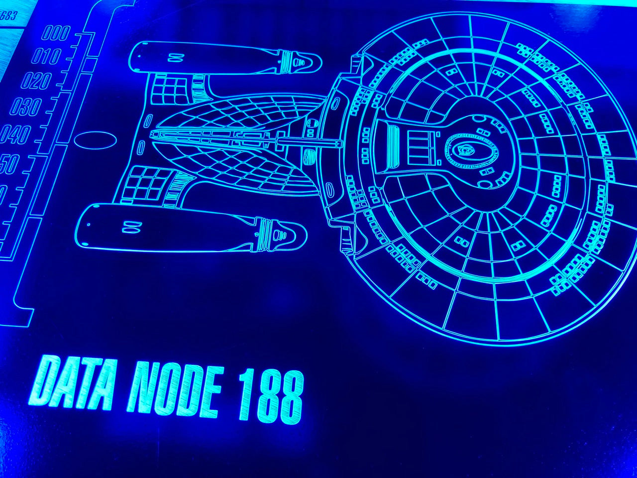 This acrylic piece was inspired by Star Trek LCARS panels found across all of the popular star ships throught the Star Trek universes.