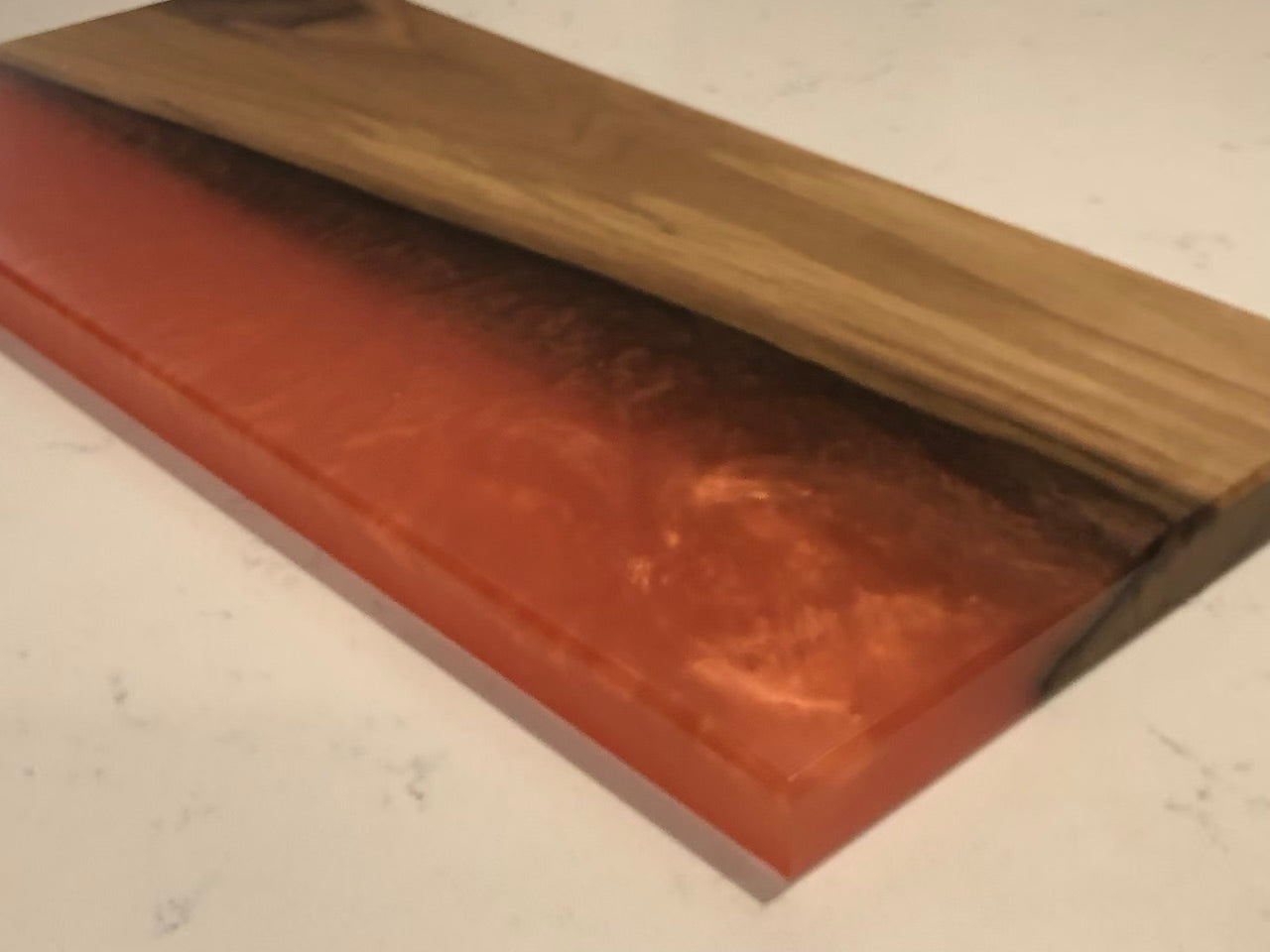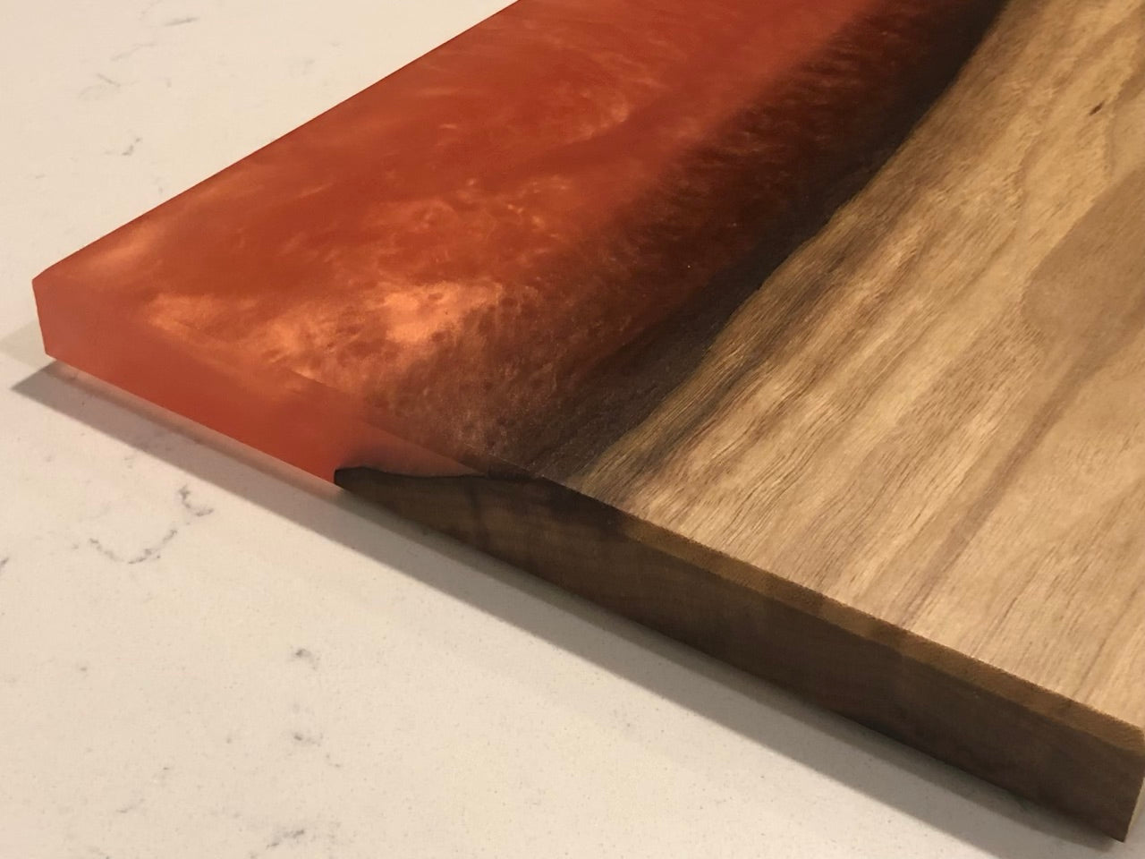 The light megenta resin is full depth of the board which offers full view throughout the board and is made with food safe epoxy resin.